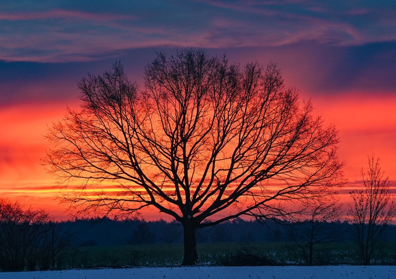 德國勃蘭登堡小鎮(zhèn)日出時分朝霞似火