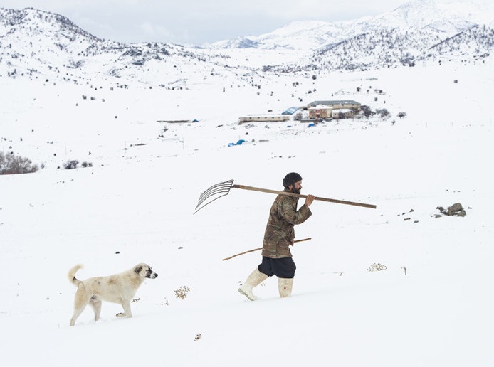 土耳其牧民雪中放牧成風景線
