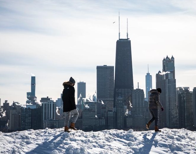 當日,寒潮侵襲芝加哥地區(qū),風寒指數(shù)達零下20攝氏度至零下25攝氏度。新華社發(fā)(喬爾·萊納攝)