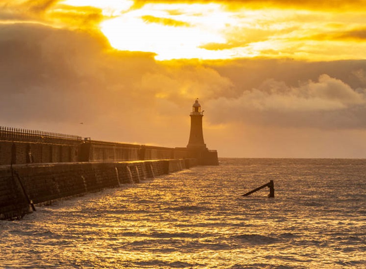 人民網(wǎng)北京3月6日電 當(dāng)?shù)貢r間3月5日,英國泰恩茅斯海濱碼頭的日出給海面鋪上了一層金色。