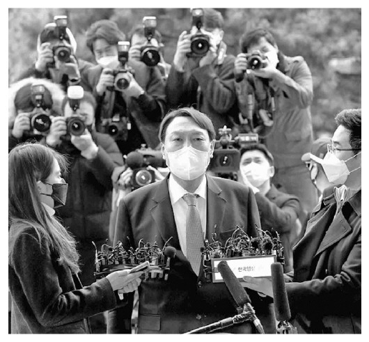 韓國檢察總長尹錫悅(圖中)3月4日向總統(tǒng)文在寅遞交辭呈。 (資料圖片)