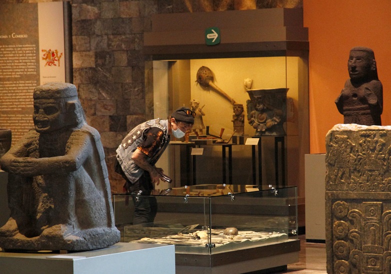 人民網(wǎng)訊 當(dāng)?shù)貢r(shí)間2021年3月11日,墨西哥墨西哥城,墨西哥國立人類學(xué)博物館重新開放,游客戴口罩參觀游覽。