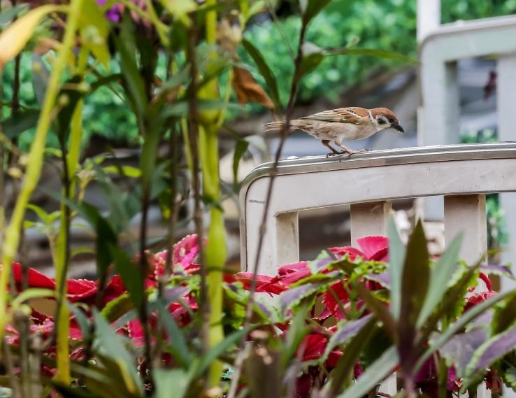 3月18日,在位于馬尼拉的菲律賓大學(xué)附屬菲律賓總醫(yī)院,一只麻雀站在“低語(yǔ)的花床”藝術(shù)裝置上。