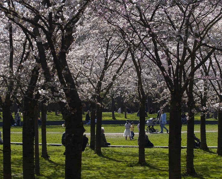 人民網(wǎng)訊 當(dāng)?shù)貢r(shí)間3月29日,荷蘭阿姆斯特丹郊外的阿莫斯特爾芬,荷蘭櫻花綻放,人們外出踏春。