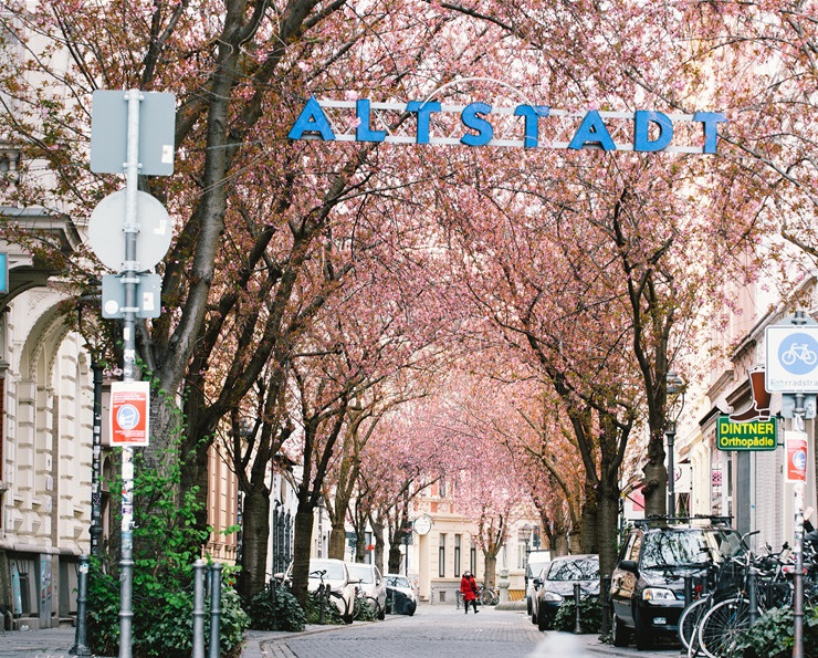 人民網訊 當地時間4月4日,德國波恩,民眾逛街賞櫻。