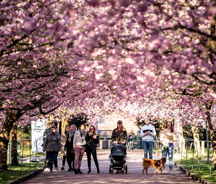 人民網(wǎng)訊 當(dāng)?shù)貢r(shí)間4月20日,丹麥哥本哈根,當(dāng)?shù)仃柟饷髅?,櫻花開始盛放。