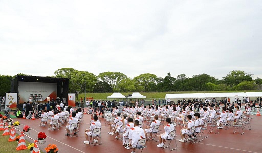 5月11日至12日,東京奧運(yùn)火炬接力相關(guān)活動(dòng)在日本福岡縣舉行。由于受新冠肺炎疫情影響,福岡縣境內(nèi)的火炬?zhèn)鬟f取消了火炬手路上跑動(dòng)傳遞,改為舉行點(diǎn)火儀式,由火炬手輪流在儀式的舞臺(tái)上交接圣火,不允許普通觀眾入場(chǎng)觀看。