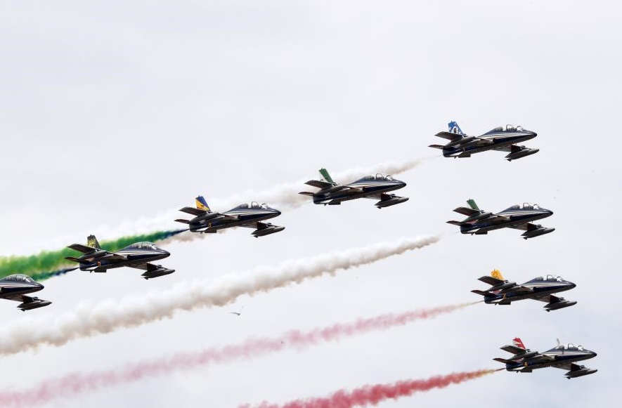 6月2日,意大利“三色箭”飛行表演隊(duì)在羅馬舉行的共和國(guó)日慶祝儀式上表演。