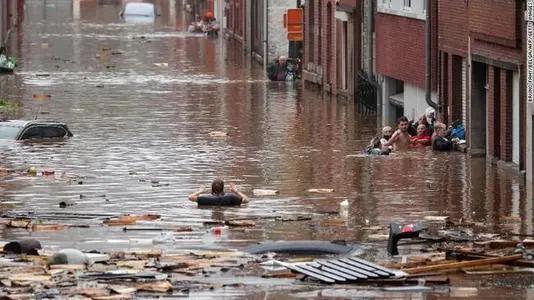 15日,比利時境內(nèi)多條河流出現(xiàn)洪峰,多地被淹,數(shù)千棟房屋受損或倒塌,部分鐵路運輸中斷。