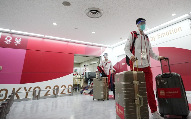 當日,參加東京奧運會的中國體育代表團部分成員抵達東京。