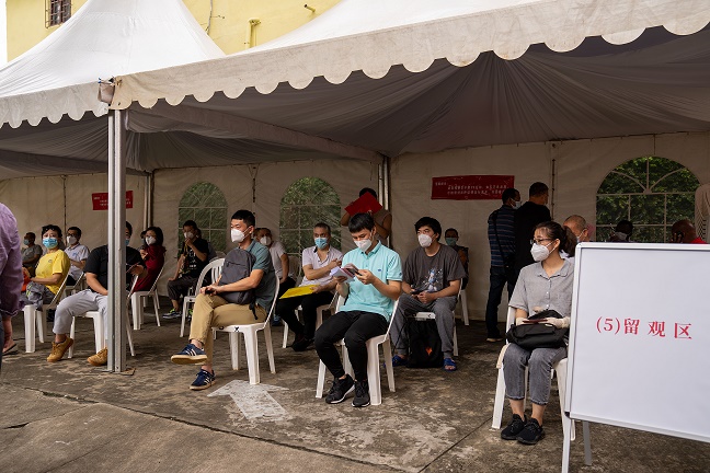 7月19日,中國公民在科特迪瓦阿比讓的“春苗行動”接種點接種新冠疫苗后留觀。