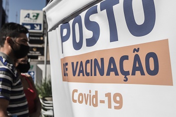7月25日,市民在巴西圣保羅市一個疫苗接種點外排隊。