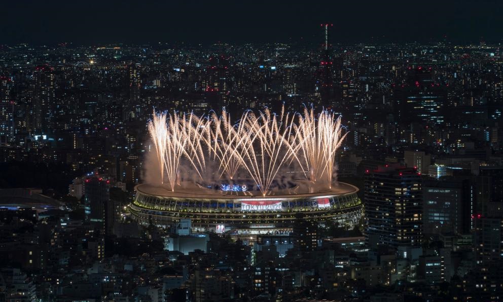 這是7月23日拍攝的東京奧運(yùn)會(huì)開幕式的焰火表演。新華社記者 杜瀟逸 攝