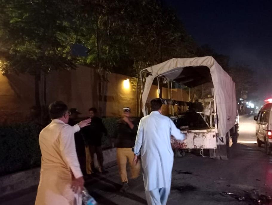 當(dāng)日,奎達發(fā)生一警車遭炸彈襲擊事件,造成2名警察死亡、至少11人受傷。新華社發(fā)(阿薩德攝)