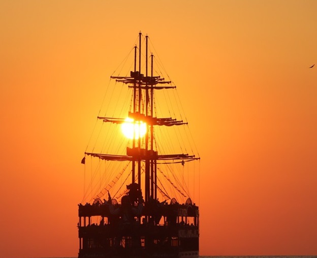 土耳其日落光芒萬丈 帆船剪影美如畫