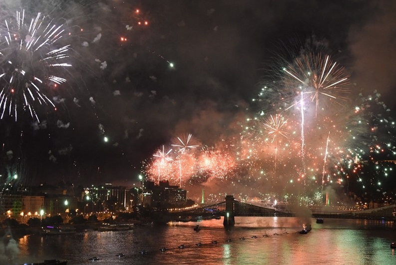 人民網訊 當地時間2021年8月20日,匈牙利布達佩斯,煙花在多瑙河上空燃放,這是慶祝該國國慶節(jié)的一部分。每年的這一天,匈牙利人都會慶祝他們國家的建立,紀念國家創(chuàng)始人圣斯蒂芬國王。