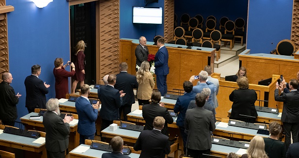 8月31日,在愛沙尼亞首都塔林,卡里斯(中左)在議會接受祝賀。