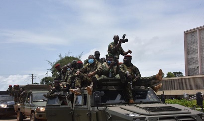 這是9月6日在幾內(nèi)亞科納克里人民宮外拍攝的政變軍隊(duì)。新華社發(fā)