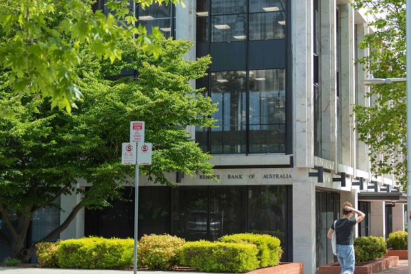 12月1日,一名女士走過澳大利亞首都堪培拉的澳大利亞儲備銀行辦公樓。