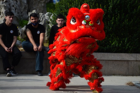 2月6日,在馬耳他桑塔露琪亞市的中國(guó)古典園林“靜園”,來(lái)自馬耳他龍龜武館的學(xué)員進(jìn)行舞獅表演。