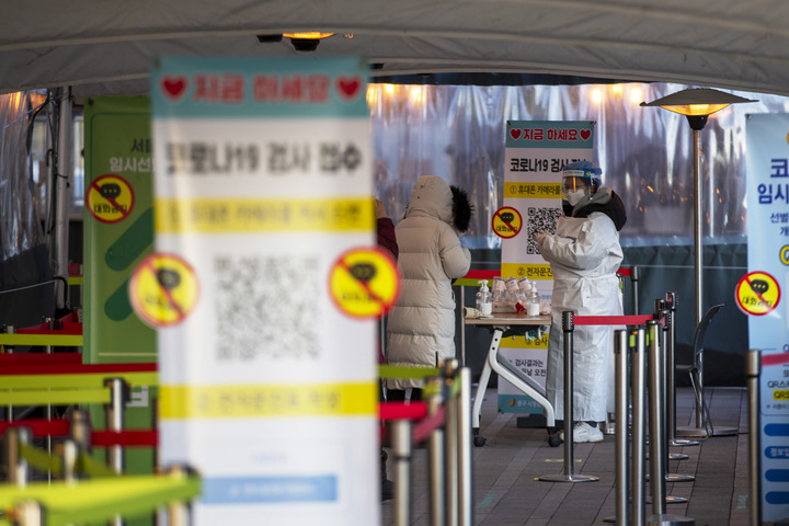 圖為1月18日拍攝的韓國首都首爾一處新冠檢測點(diǎn)。 新華社記者 王益亮 攝