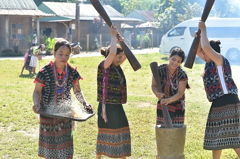 6月19日,在越南中部廣南省西江縣,戈都族民眾篩米和搗米。