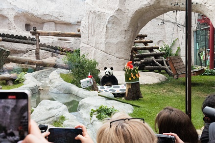 當(dāng)日,莫斯科動(dòng)物園為來(lái)自中國(guó)的大熊貓“如意”和“丁丁”慶祝生日。雄性熊貓“如意”2016年7月31日出生于中國(guó)四川雅安碧峰峽基地,雌性熊貓“丁丁”2017年7月30日出生于中國(guó)四川臥龍神樹(shù)坪基地,它們于2019年4月29日抵達(dá)莫斯科,開(kāi)啟為期15年的旅居生活。