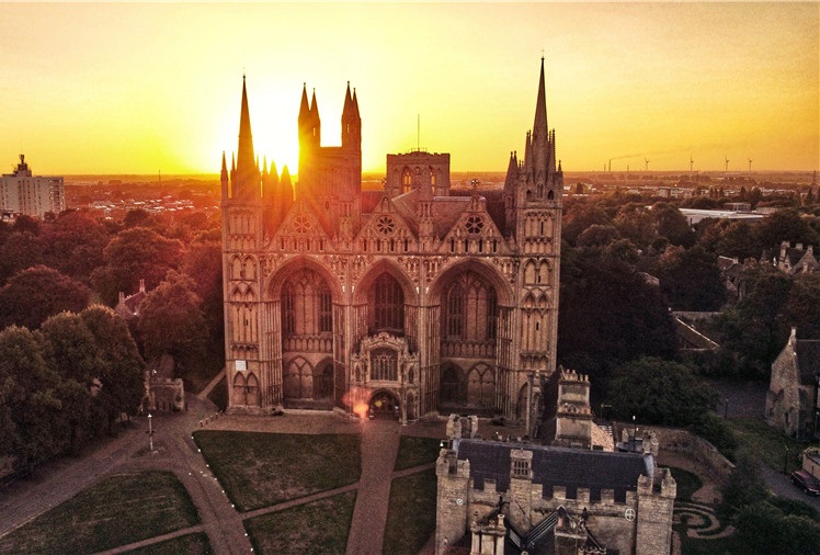 當(dāng)?shù)貢r(shí)間9月1日,英國(guó)劍橋郡彼得伯勒,太陽(yáng)從彼得伯勒大教堂后升起,日出景色美麗如畫(huà)。