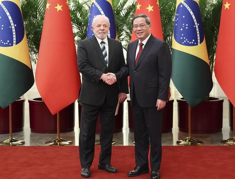 國務(wù)院總理李強4月14日下午在人民大會堂會見來華進行國事訪問的巴西總統(tǒng)盧拉。