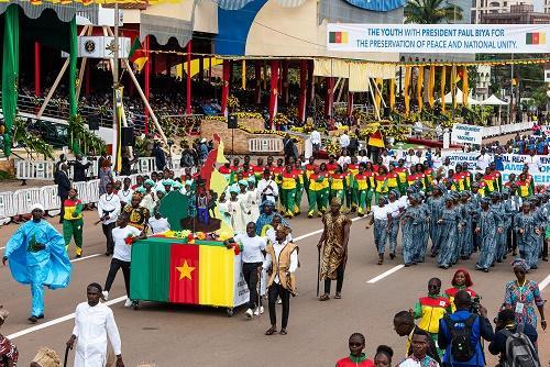 圖為20日,在喀麥隆首都雅溫得舉行的國慶慶祝活動上,民眾列隊行進。新華社發(fā)(科普索攝)
