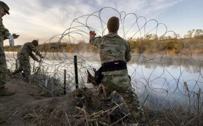 阿博特不滿這一裁決且態(tài)度強硬,得州國民警衛(wèi)隊人員繼續(xù)在邊境設(shè)置刀片刺網(wǎng)。阿博特表示,憲法賦予得州自衛(wèi)的權(quán)利,而拜登沒有履行保護美國邊境安全的職責(zé),讓數(shù)以百萬的移民從南部邊境非法進入美國。