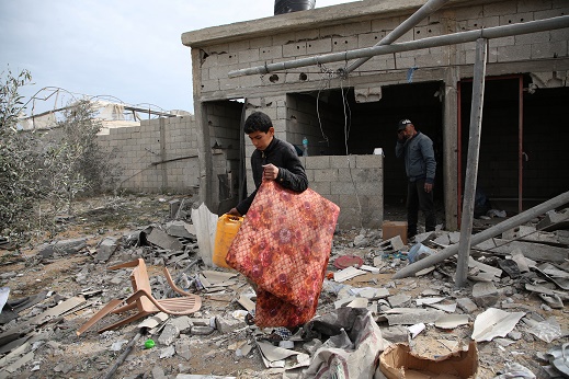 26日,在加沙地帶南部城市拉法,人們在廢墟中收集物品。新華社發(fā)(哈立德·奧馬爾攝)