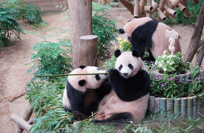 愛寶樂園大熊貓飼養(yǎng)員姜哲遠(yuǎn)在慶生活動(dòng)上說,這是“睿寶”和“輝寶”與媽媽“愛寶”一起過的最后一個(gè)生日。根據(jù)大熊貓的生長(zhǎng)習(xí)性,它們?cè)?歲半至2歲后將離開媽媽,開始獨(dú)立生活。在逐步進(jìn)行適應(yīng)訓(xùn)練后,“睿寶”和“輝寶”有望于今年9月在新場(chǎng)館單獨(dú)與游客見面。
