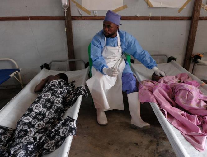 7月10日,在剛果(金)首都金沙薩市郊的一座霍亂治療中心,醫(yī)護(hù)人員照料病患。