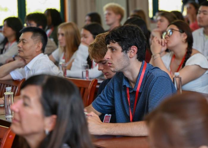 7月28日,在湖北省黃岡市紅安縣,美國飛虎隊夏令營代表團成員觀看紀錄片《飛虎情緣》。