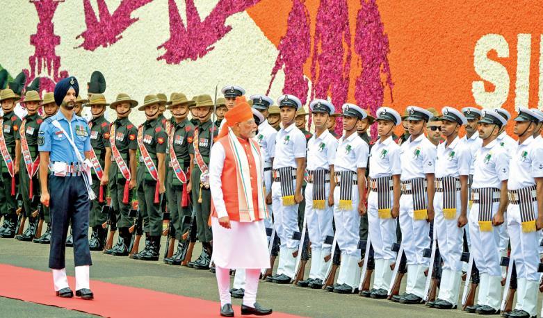 當(dāng)?shù)貢r間2025年8月15日,印度新德里,印度總理莫迪在紅堡檢閱儀仗隊,慶祝印度第79個獨立日。莫迪在講話中強調(diào)建設(shè)“發(fā)達印度”,并宣布了包括下一代商品和服務(wù)稅改革及面向青年的“總理發(fā)達印度就業(yè)計劃”在內(nèi)的重大舉措。 CFP供圖