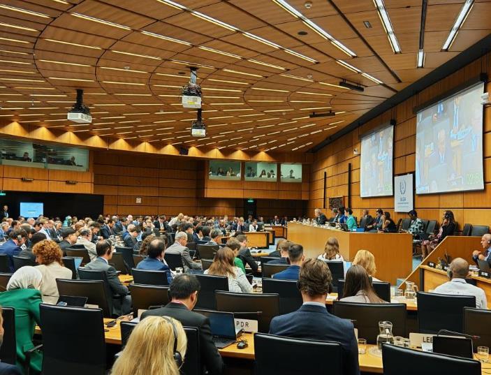 9月10日在奧地利維也納拍攝的國際原子能機構理事會會議現(xiàn)場。新華社發(fā)(中國常駐維也納聯(lián)合國代表團供圖)