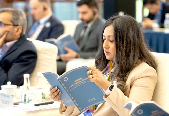 圖為9月7日,與會代表在2025全球南方媒體智庫高端論壇上閱讀《思想殖民——美國認(rèn)知戰(zhàn)的手段、根源及國際危害》智庫報(bào)告。 新華社記者 高詠薇 攝