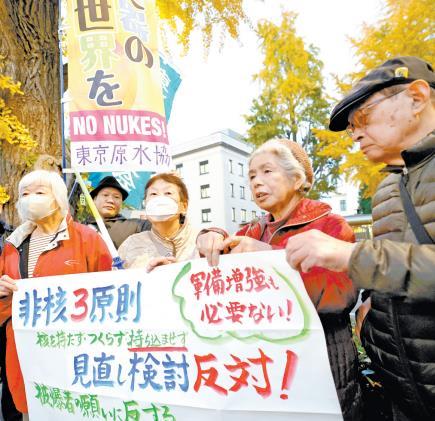 自民黨修訂“安保三文件”的相關(guān)討論,進(jìn)一步引起日本國內(nèi)的廣泛批評和強(qiáng)烈擔(dān)憂。多個在野黨向自民黨提出不同意見,提醒修訂“安保三文件”要“意識到日本作為‘和平國家’一路走來的基礎(chǔ)”;日本民眾及媒體也發(fā)聲反對,要求停止放寬武器出口限制和修改“無核三原則”,維護(hù)日本“愛好和平”的形象。