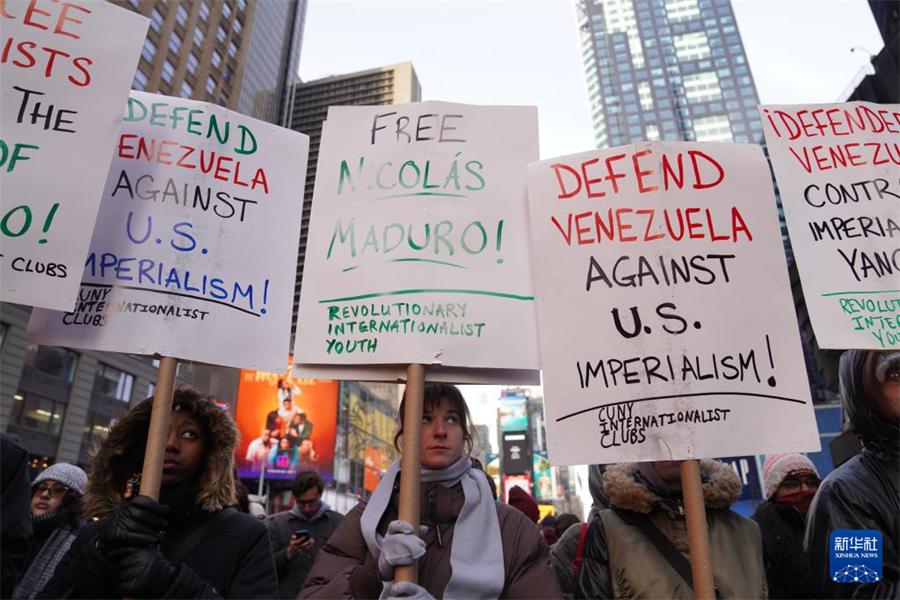 1月3日,近千名民眾在美國紐約舉行集會游行,抗議美國對委內(nèi)瑞拉實施軍事打擊。