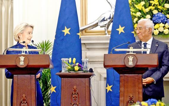 自歐盟委員會(huì)1月21日正式提出《數(shù)字網(wǎng)絡(luò)法案》立法提案以來,歐盟領(lǐng)導(dǎo)人在多個(gè)場(chǎng)合力推該法案。圖為當(dāng)?shù)貢r(shí)間1月27日,歐盟委員會(huì)主席馮德萊恩(左)與歐洲理事會(huì)主席科斯塔共同出席新聞發(fā)布會(huì)。 CFP供圖