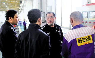 圖為周魯軍(左三)生前在生產(chǎn)現(xiàn)場講解安全設(shè)施檢查重點。 山東省聊城監(jiān)獄供圖