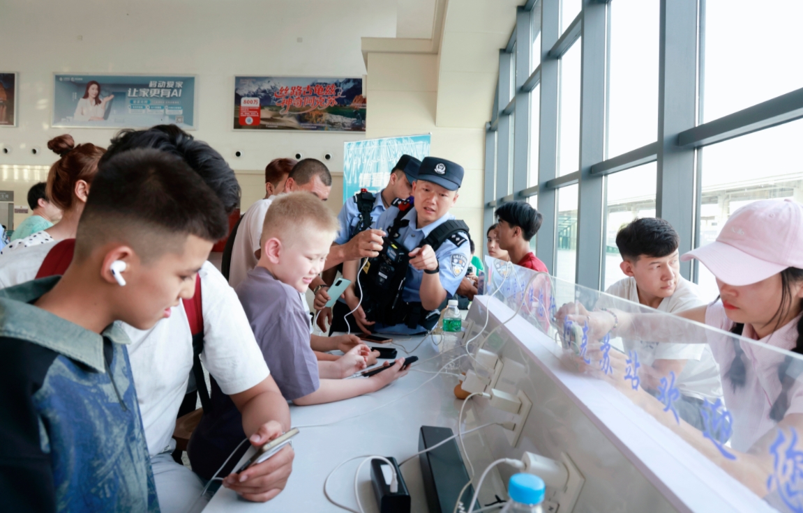“出現(xiàn)警情后,指揮室會第一時間通知相關(guān)警力到現(xiàn)場處置?!彼L王彥帥表示,在車站秩序維護(hù)上,派出所針對暑運(yùn)客流高峰特征,科學(xué)調(diào)配警力資源,加密售票廳、候車室等重點(diǎn)區(qū)域的巡邏頻次與管控力度,及時疏導(dǎo)擁堵人群,引導(dǎo)旅客有序購票、安檢、候車。此外,民警主動延伸服務(wù)觸角,為旅客提供問詢指引、失物查找等便民服務(wù)。