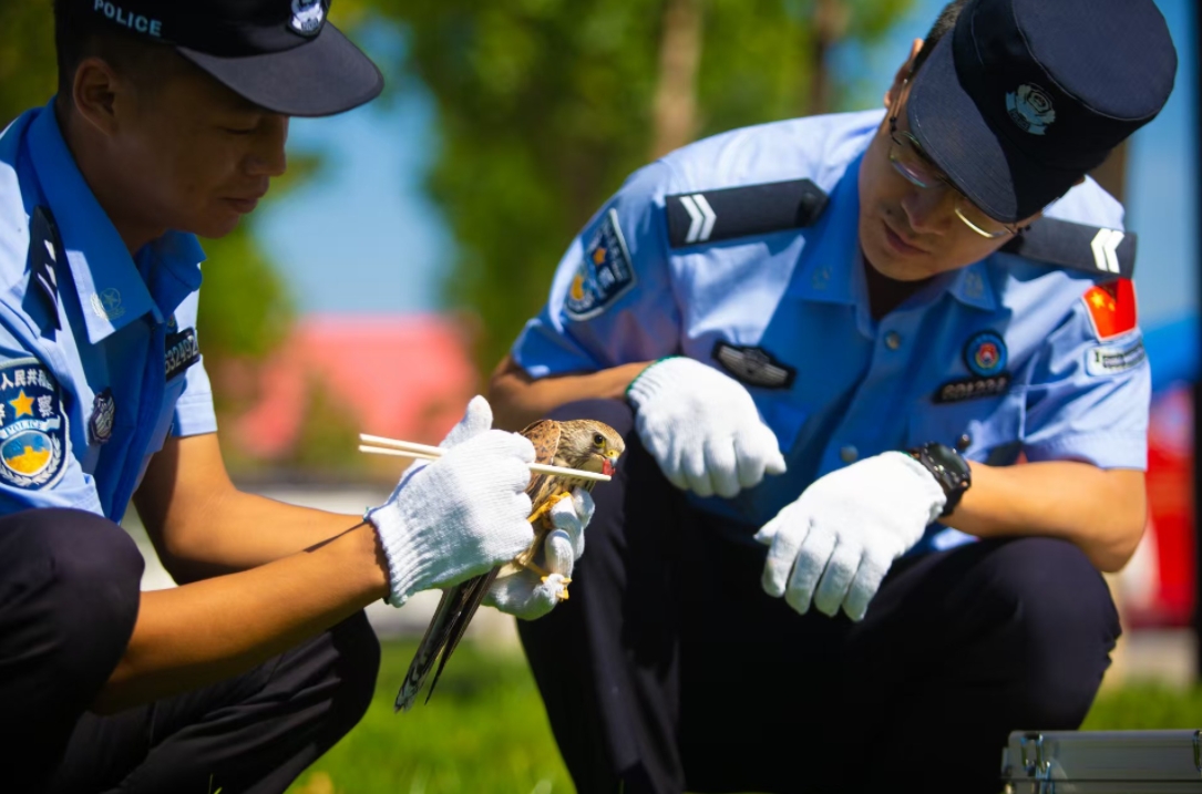 救助部門工作人員到達(dá)派出所后,確認(rèn)被救助的鳥(niǎo)系國(guó)家二級(jí)保護(hù)動(dòng)物——紅隼,隼科的小型猛禽之一。在工作人員的指導(dǎo)下,民警給紅隼投喂了水和食物。目前,這只紅隼已接受專業(yè)救助,待其恢復(fù)生存能力后將放歸大自然。