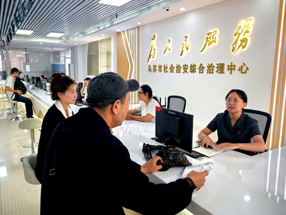 圖為9月11日,在烏蘇市社會治安綜合治理中心,工作人員正在接待來訪群眾。