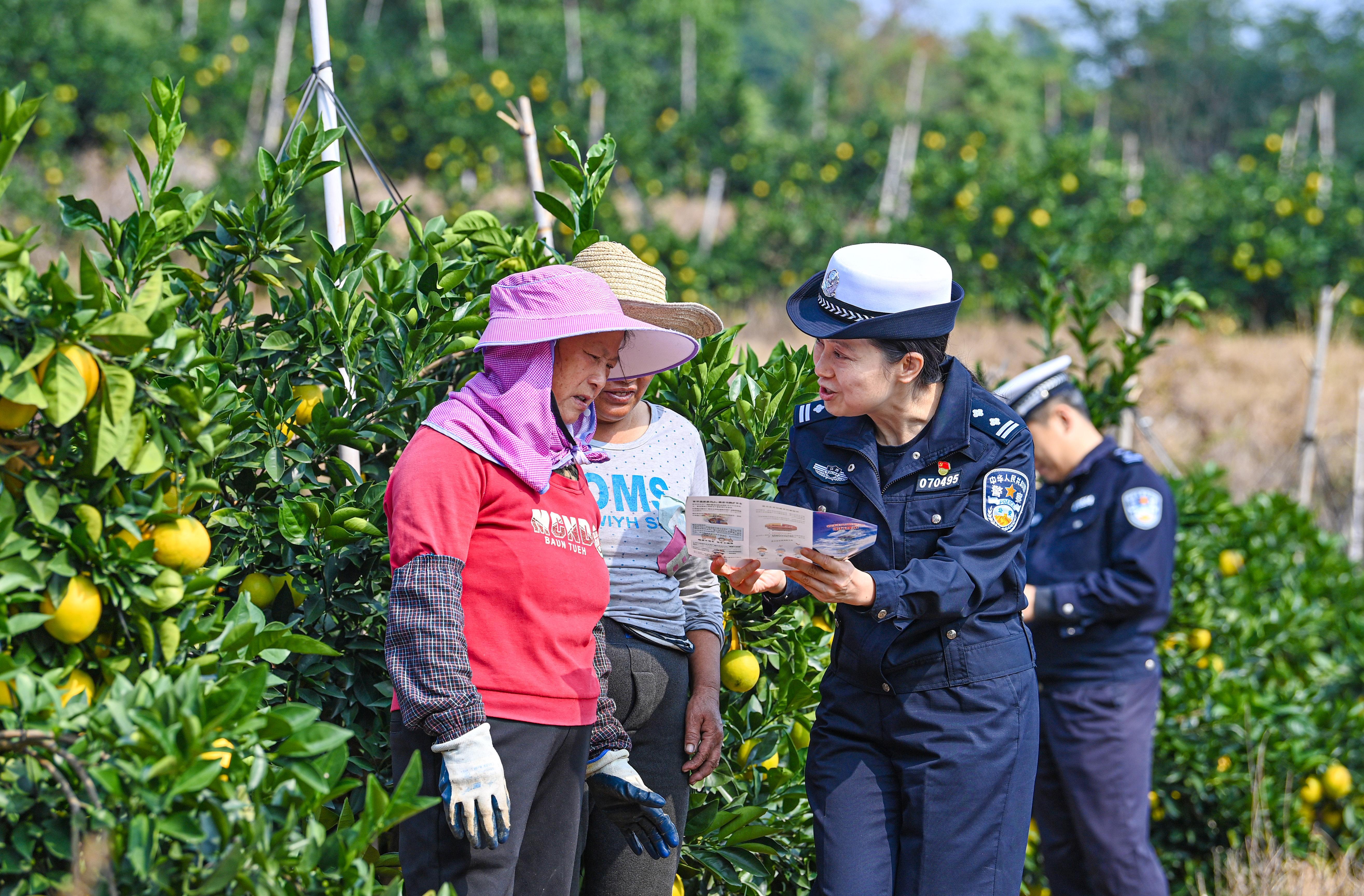 眼下,贛南臍橙即將迎來豐收季。連日來,江西省贛州市公安局交管支隊(duì)章貢大隊(duì)組織民警深入轄區(qū)臍橙種植基地,通過嘮家常、以案釋法、現(xiàn)場(chǎng)答疑等方式,向群眾宣傳反詐、禁毒及交通安全等知識(shí),全力守護(hù)群眾“甜蜜”致富路。