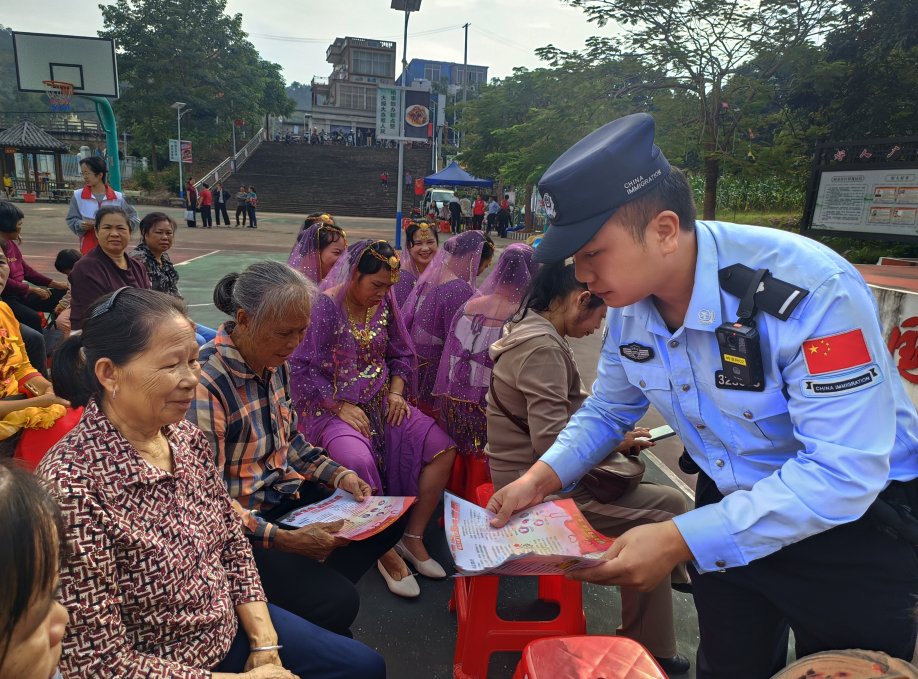 當(dāng)天9時,國門廣場成為普法宣傳的“前沿陣地”。民警聚焦群眾最關(guān)心的法律需求,圍繞防范電信網(wǎng)絡(luò)詐騙、邊境法律法規(guī)等內(nèi)容,開展針對性普法宣傳。活動中,民警通過發(fā)放定制化宣傳手冊、剖析真實(shí)詐騙案例、現(xiàn)場答疑解惑等方式,將法律知識轉(zhuǎn)化為群眾聽得懂、用得上的“護(hù)身指南”。針對老年人群體易受侵害的“痛點(diǎn)”,民警重點(diǎn)講解“虛假投資”“保健品詐騙”“冒充親屬借錢”等常見騙局的作案手法與識別技巧,反復(fù)叮囑老年人“不輕信、不透露、不轉(zhuǎn)賬”,手把手教大家守護(hù)好“養(yǎng)老錢”。