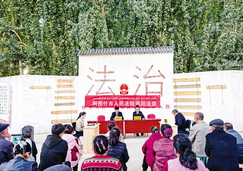 圖為阿圖什市人民法院巡回法庭在上阿圖什鎮(zhèn)塔庫提村開庭。張蕾 攝