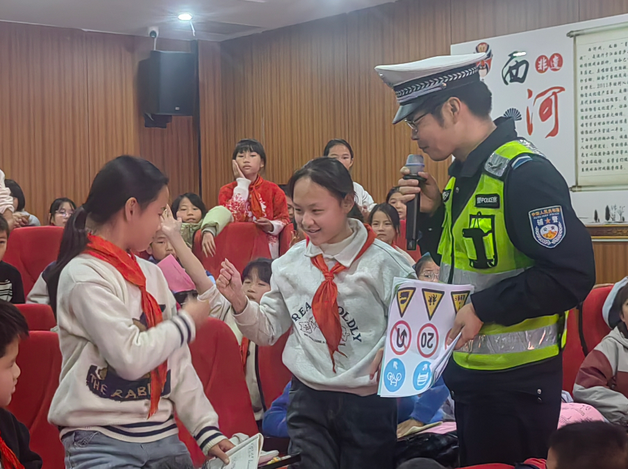 連日來,江西省廬山市公安局交管大隊組織民輔警走進轄區(qū)中小學(xué)校,通過PPT演示、趣味游戲、有獎問答等方式宣講交通安全知識,進一步加強中小學(xué)生“知危險、會避險”的自我防護能力。