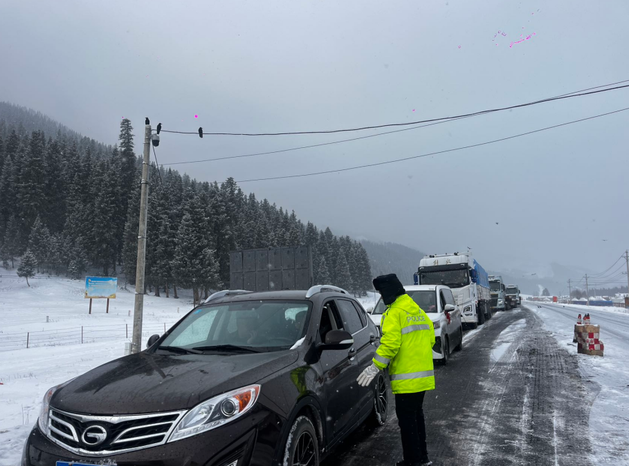 11月22日,新疆和靜縣山區(qū)道路迎來降雪天氣,部分道路積雪結(jié)冰,給群眾出行和道路交通安全帶來風險挑戰(zhàn)。和靜縣公安局交通管理大隊迅速啟動惡劣天氣交通管理應(yīng)急預案,全警動員、科學部署,全力保障轄區(qū)道路交通安全暢通,守護群眾出行平安。交警在轄區(qū)重點路段、重點時段增派警力,采取固定執(zhí)勤和巡邏執(zhí)勤相結(jié)合的方式,指揮疏導過往車輛和行人有序通行,全力保障群眾出行安全。